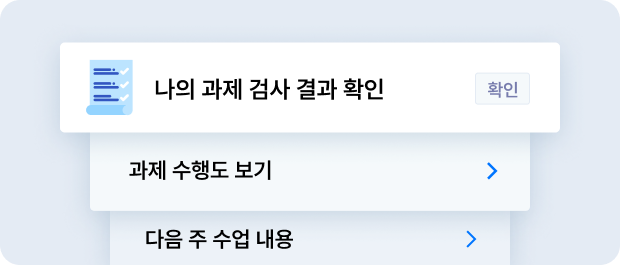 내 성적표 조회, 과제장 검사결과 조회, 다음주 과제 조회