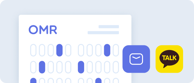 학원 복사기로 OMR 용지를 인쇄하고, 자동 채점 후 성적표를 생성하여 학부모에게 카카오톡/문자로 발송할 수 있습니다.